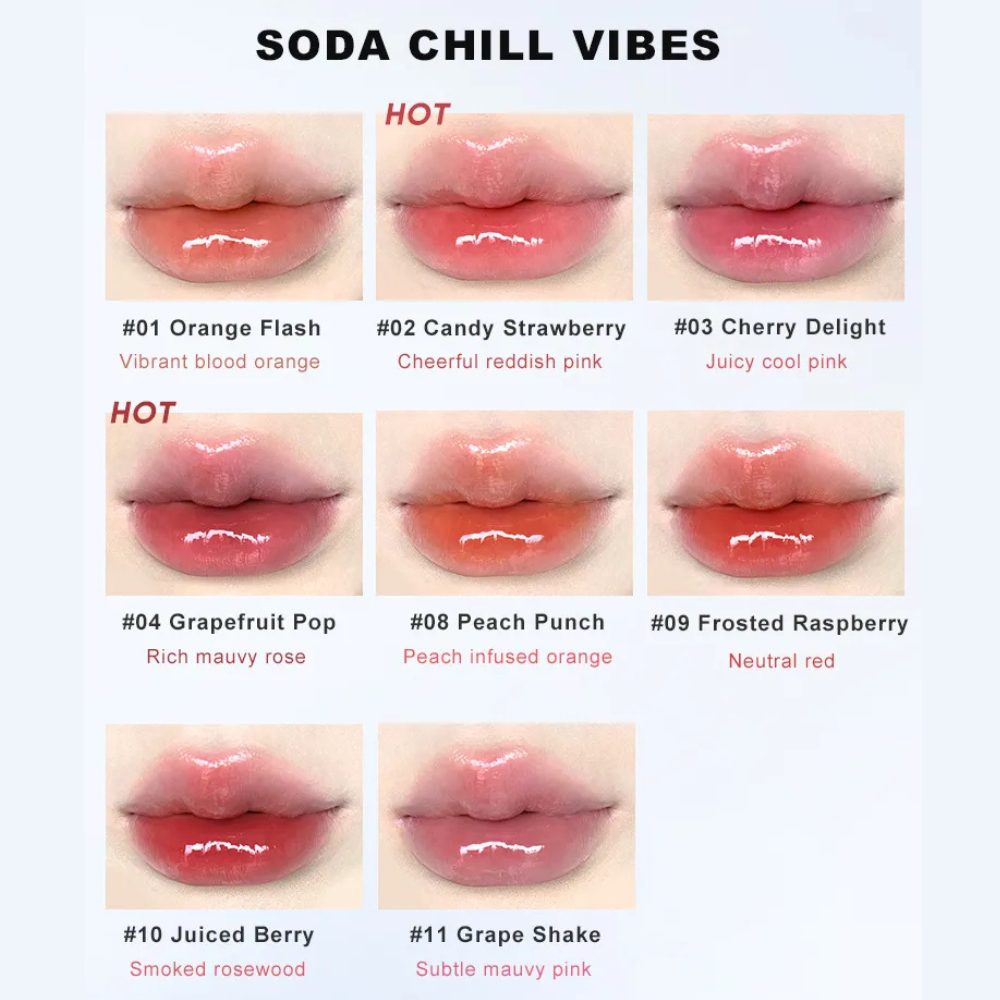 - Long-lasting wear, glossy water film to maintain lip colour.